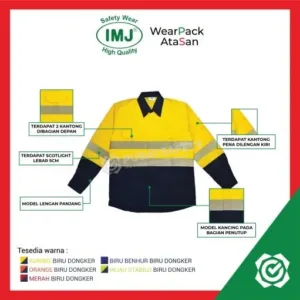 Pusat Safety menyediakan atasan kerja safety yang terbuat dari cotton, wearpack coverall cotton, wearpack coverall semi cotton, rompi kerja safety hingga atasan lengan pendek. Anda bisa memilih pakaian kerja yang paling sesuai dengan kebutuhan anda. Jika anda membutuhkan perlindungan seluruh badan, maka bisa memilih baju coverall. Kalau membutuhkan perlindungan setengah badan saja, cukup pilih atasan.