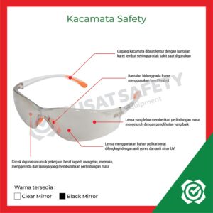 Lensa kaca berbahan polycarbonate sehingga mampu melindungi mata dari pecahan material.