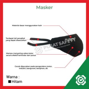 Masker kain hitam penyaring udara kotor yang efektif melindungi polusi. Baik digunakan pengendara motor, industri, bangunan, kerajinan, dll.