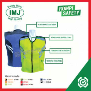 Rompi Double Mesh merk IMJ merupakan rompi kerja berbahan mesh untuk proyek yang memiliki jaring berkualitas tidak mudah robek.