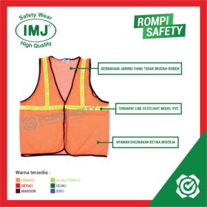 Rompi Jaring Halus merupakan rompi kerja untuk proyek yang memiliki jaring berkualitas tidak mudah robek dan mampu memberikan proteksi pada saat berkerja serta nyaman digunakan.